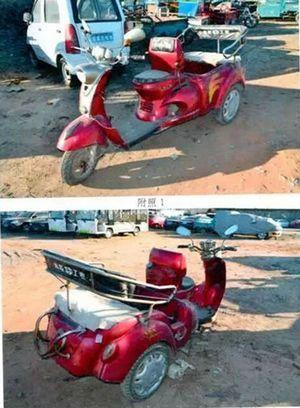 3、電動(dòng)三輪車,具有腳踏操縱裝置。車輛品牌為踏可飛電動(dòng)三輪車、昌迪電動(dòng)三輪車、鑫傲電動(dòng)三輪車、雷沃電動(dòng)三輪車、大江電動(dòng)三輪車、寶島電動(dòng)三輪車。