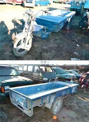 4、燃油三輪車,具有腳踏操縱裝置。車輛品牌為嘉陵工業(yè)燃油三輪車、福田五星燃油三輪車。