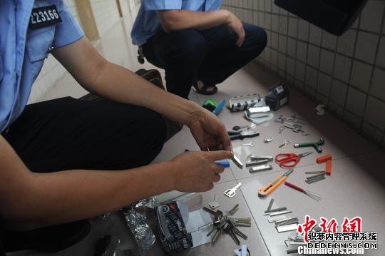 中新網(wǎng)茂名5月14日電 (梁盛 黃海櫻)化州市警方14日向媒體通報稱,經(jīng)過一個多月的循線偵查,警方打掉一個流竄“兩廣”作案的特大入室盜竊團伙,擒獲3疑犯,偵破系列案件10多宗,其中曾先后“五進宮”的主犯陳某堅開鎖技術堪比開鎖專家。