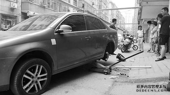 衡水一小區(qū)20多部車被扎胎 嶄新奧迪4輪胎全癟