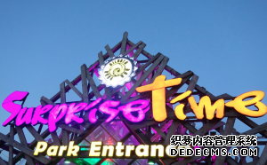太陽剛剛落下,海邊木質(zhì)的棧道配著初亮的路燈,非常浪漫的一幕。遠處的海螺,遙相呼應,讓你感覺就像身在童話中一般。入夜,公園門口的霓虹,很有魔幻的感覺。