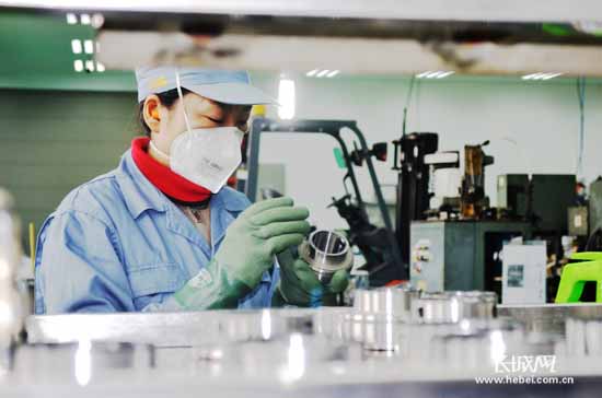 公司員工在檢測(cè)產(chǎn)品外觀。 長(zhǎng)城網(wǎng)秦皇島11月6日訊(祖迪 記者 李興雙 通訊員 王繼軍)今日記者獲悉,日前,秦皇島恩彼碧軸承有限公司新工廠投產(chǎn)運(yùn)營(yíng),標(biāo)志著世界最大的帶座軸承 生