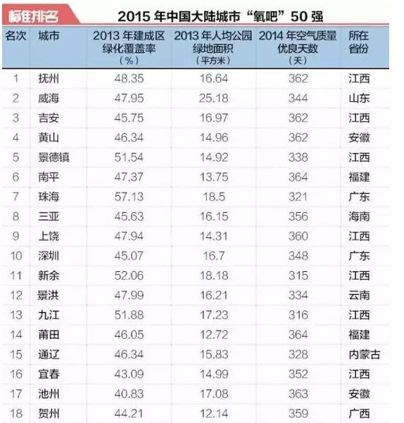 近日,媒體盤點2015年中國大陸 城市 氧吧50強, 秦皇島 位列29,是全省唯一入選前50的城市。 此次排名數(shù)據(jù)由標(biāo)準(zhǔn)排名研究院搜集提供。 其中,森林覆蓋率、綠化覆蓋率、綠地率等指標(biāo)