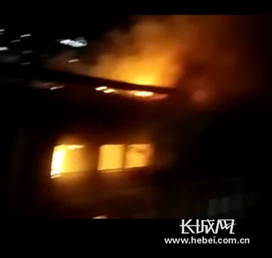 飯店燃起熊熊大火。圖片來自網(wǎng)友 長城網(wǎng)秦皇島1月8日訊(記者 祖迪)2016年1月7日17時50分許,秦皇島開發(fā)區(qū)沸騰魚鄉(xiāng)飯店發(fā)生 火災(zāi) 。 接警后,秦皇島市公安局110指揮中心立即指派開發(fā)區(qū)