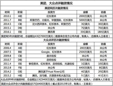 此外,美團(tuán)也一直在去阿里化,價值兄此前就明確指出過這一點(diǎn)。以王興的強(qiáng)勢來分析,美團(tuán)其實(shí)并不希望受制于任何一方,但早期為了將團(tuán)購模式延續(xù),引入阿里屬于不得已為之,而阿里也在創(chuàng)建口碑尋求突破,雙方彼此心知肚明。當(dāng)彼此認(rèn)為無法親密合作,自然分道揚(yáng)鑣是最好的方式。阿里與美團(tuán),與其說是此前的彼此認(rèn)同,不如說是模式發(fā)展初期彼此目標(biāo)相似,相互攜手的自由戀愛更為恰當(dāng)。兩位個性要強(qiáng)的人在熱戀時候可以彼此遷就,甚至認(rèn)為真愛就在眼前。但是當(dāng)各種矛盾隨著現(xiàn)實(shí)困境被暴露后,雙方個性的不可調(diào)和也最終宣告彼此分手是最好的結(jié)局。 騰訊垂青美團(tuán):資本方式構(gòu)建O2O體系與阿里“感性”的選擇方式不同,騰訊看重美團(tuán)的,則是戰(zhàn)略地位和資本投入的回報(bào)等更加理性、經(jīng)濟(jì)的投入。根據(jù)價值兄統(tǒng)計(jì)發(fā)現(xiàn),美團(tuán)已經(jīng)融資超過57億美元(如下表格),但騰訊僅僅是從2016年1月份的這次才進(jìn)入。如果從資本回報(bào)率來說,美團(tuán)用估值180億來融資,對于精明的騰訊顯然并不劃算。那么為何騰訊依然癡情投入呢?