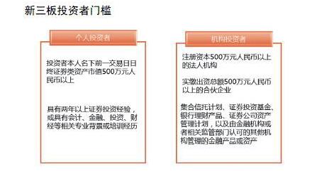 上周五,新三板分層了,但由于大多數(shù)投資者根本參與不了,所以也不關(guān)注,反而很多人在問(wèn),這個(gè)分層之后,對(duì)于A股到底影響幾何?其實(shí)分層之后有一大殺招沒(méi)出,一旦這個(gè)殺招出了,A股將重啟暴跌模式。 先說(shuō)新三板的這次分層,畫了三道門檻, 1、最近兩年連續(xù)盈利,且年平均凈利潤(rùn)不少于2000萬(wàn)元(以扣除非經(jīng)常性損益前后孰低者為計(jì)算依據(jù));最近兩年加權(quán)平均凈資產(chǎn)收益率平均不低于10%(以扣除非經(jīng)常性損益前后孰低者為計(jì)算依據(jù))。 2、最近兩年?duì)I業(yè)收入連續(xù)增長(zhǎng),且年均復(fù)合增長(zhǎng)率不低于50%;最近兩年?duì)I業(yè)收入平均不低于4000萬(wàn)元;股本不少于2000萬(wàn)股。 3、最近有成交的60個(gè)做市轉(zhuǎn)讓日的平均市值不少于6億元;最近一年年末股東權(quán)益不少于5000萬(wàn)元;做市商家數(shù)不少于6家;合格投資者不少于50人。