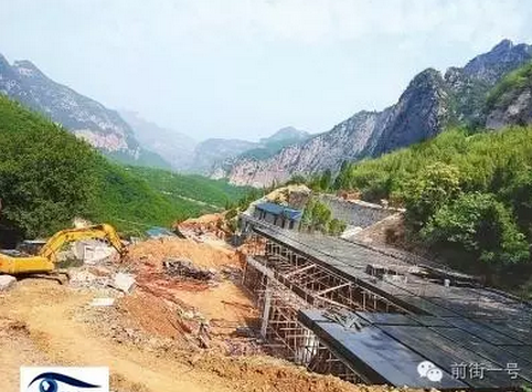 水庫旁正在蓋房子。資料圖片 舉報(bào):景區(qū)內(nèi)砍樹建別墅 近日,河南鞏義市大峪溝鎮(zhèn)民權(quán)村村民向前街一號(qianjieyihao)記者舉報(bào)稱,從2015年夏天開始,該村所處青龍山慈云寺景區(qū)內(nèi)的水庫旁,有人砍伐林木后在附近建成別墅和農(nóng)莊。