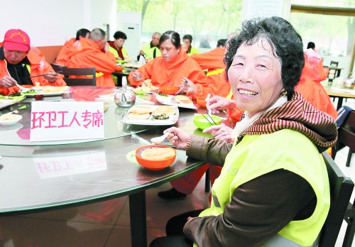 吃上免費(fèi)早餐,環(huán)衛(wèi)工人露出笑臉。 記者 李鐸 攝 5月4日凌晨5點半,當(dāng)許多人還在睡夢中時,在海港區(qū)東環(huán)路忙碌的環(huán)衛(wèi)工人于鳳杰已把路面清掃得干干凈凈,按照往常,她得拖著疲憊的身軀回家做飯,可現(xiàn)在不一樣了,從昨天開始,全市有3000多名環(huán)衛(wèi)工人能吃到免費(fèi)的愛心早餐。 “在家也沒時間,湊乎做點掛面湯啥的,哪有現(xiàn)在這么多花樣兒啊……”在秦皇東大街路邊的職工大食堂,記者在門口看到“愛心早餐”的標(biāo)識。早上7點左右,于鳳杰和其他16位環(huán)衛(wèi)工人在這里吃飯,一碗粥,一張發(fā)面餅,兩份小菜,不夠還可以再去拿,一頓飯下來大家都吃得飽飽的。“平時對付一口,要不就買個煎餅果子在路邊吃,有時候就不吃了。”喝完粥的環(huán)衛(wèi)工人劉桂芬又盛了一碗,吃得心滿意足,“吃完飯還有時間回家休息會兒,真好。” 在現(xiàn)場,記者還看到許多打包好的早餐,“有的環(huán)衛(wèi)工人不能過來吃,我們就送到他們手中。”海港區(qū)城管局環(huán)衛(wèi)九所所長彼守存說,打包的150份早餐,待會兒會送到附近每一位環(huán)衛(wèi)工人手中。 一餐早飯,溫暖一片心。據(jù)了解,市工商業(yè)聯(lián)合會和市城市管理綜合執(zhí)法局聯(lián)合策劃組織了“關(guān)愛最美勞動者”——為環(huán)衛(wèi)工人提供免費(fèi)早餐的大型公益活動,在短短兩個月的時間里完成了組織機(jī)構(gòu)建立、工作管理制度制定、啟動儀式方案設(shè)計、標(biāo)識設(shè)計、物資募集等多項工作。截至發(fā)稿,已累計接收200余萬元捐款,發(fā)動38家早餐企業(yè)成為愛心早餐點。 目前,活動的捐款還在逐步增加,主辦方表示,活動將持續(xù)至8月,如果有更多愛心企業(yè)加入,活動還能順延,希望更多愛心人士參與到關(guān)愛行動中來,共同致敬城市美容師,愛護(hù)我們的家園。 38家愛心早餐點 區(qū)域名稱\&定點商家名稱\&商家地址\& 海港區(qū)\&高姐羊湯\&海陽路洋洋花卉對面\& 蒸功夫包子\&河北大街與海陽路交叉口西北角\& 秦港餐飲海陽路店\&海通路\& 聚仁堂快餐\&民族路\& 職工大食堂\&秦皇大街\& 東坡肉包鋪\&秦安街\& 早餐工程便民店\&開發(fā)區(qū)老管委\& 云龍美食城\&文昌路\& 酒美味\&森林逸城市場\& 首府食堂\&先鋒路\& 包子盒飯\&民族路\& 姐妹花面館\&迎賓東路\& 福城包子\&八三市場\& 如品包子\&建國路\& 上海灌湯包\&西港路市場\& 北戴河區(qū)\&蘭州拉面\&北戴河海濱\& 山海關(guān)區(qū)\&閆春會早點\&西關(guān)大街103號\& 順澤湯館\&運(yùn)輸里\& 海彬小吃部\&古城\& 南?;▓@早餐\&老龍頭路\& 愛潔早餐\&南園村付81號\& 方記包子鋪\&山海人家附近\& 潤和早餐部\&貨場后街2號\& 香溪小吃\&老龍頭路\& 開發(fā)區(qū)\&紅太陽粥屋\&開發(fā)區(qū)長江中道\& 老臺門湯包\&開發(fā)區(qū)江蘇中路\& 福阿婆拱橋米線\&開發(fā)區(qū)江蘇中路\& 北戴河新區(qū)\&秦皇島玖邦建筑工程有限公司食堂\&南戴河寧海路\& 撫寧區(qū)\&餅粥湯館\&香營街\& 周記羊湯\&金山大街\& 二姑包子\&東斜街\& 古城包子\&迎賓路\& 牛肉板面\&健康大街\& 粥屋\&長征路\& 天津灌湯包\&北大街\& 鼓樓二姑包子\&北大街\& 姐弟包子鋪\&南大街\& 老高小餐館\&南大街\& (責(zé)任編輯:admin) |