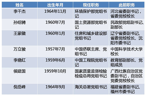 近期多家中央單位黨組書記調(diào)整 (統(tǒng)計(jì)至2017年6月14日,按任職發(fā)布時(shí)間排序) 近期,多家中央單位黨組書記調(diào)整。他們分別是李干杰任環(huán)境保護(hù)部黨組書記,孫紹騁任國(guó)土資源部黨組書記,王蒙徽任住建部黨組書記,萬(wàn)立駿任中國(guó)僑聯(lián)黨組書記,李曉紅任中國(guó)工程院黨組書記,侯建國(guó)任質(zhì)檢總局黨組書記,倪岳峰任海關(guān)總署黨組書記。記者通過梳理此輪履新的七位中央單位黨組書記的履歷,發(fā)現(xiàn)專業(yè)對(duì)口、經(jīng)驗(yàn)豐富的人才愈加受到重用。 看點(diǎn)一:“讓專業(yè)的人干專業(yè)的事情” 專業(yè)型、知識(shí)型人才備受重用 此輪多家中央單位黨組書記密集調(diào)整,專業(yè)型、知識(shí)型人才備受重用。“讓專業(yè)的人干專業(yè)的事”,把學(xué)有所長(zhǎng)、干有所成的干部,放在能充分發(fā)揮其專業(yè)優(yōu)勢(shì)、專業(yè)特長(zhǎng)的崗位上,才能更好地將人才優(yōu)勢(shì)轉(zhuǎn)化為發(fā)展優(yōu)勢(shì)。 新任環(huán)保部黨組書記李干杰畢業(yè)于清華大學(xué)核反應(yīng)堆工程與安全專業(yè),高級(jí)工程師,他曾先后在環(huán)保部工作十多年,專業(yè)經(jīng)歷豐富。李干杰歷任國(guó)家環(huán)境保護(hù)總局核安全與輻射環(huán)境管理司副司長(zhǎng),核安全中心主任、黨委副書記(正局級(jí)),核安全司司長(zhǎng)等職務(wù)。2006年12月任國(guó)家環(huán)境保護(hù)總局副局長(zhǎng)、黨組成員、國(guó)家核安全局局長(zhǎng)。2008年3月任環(huán)境保護(hù)部副部長(zhǎng)、黨組成員、國(guó)家核安全局局長(zhǎng)。2016年10月任河北省委副書記,省委黨校校長(zhǎng)。 新任住建部黨組書記王蒙徽同樣畢業(yè)于清華大學(xué),是建筑系科班出身。他擁有工學(xué)博士學(xué)位,副教授職稱。1995年8月,他赴地方任職,出任廣東省增城市副市長(zhǎng)。而后他又擔(dān)任過廣東省廣州市建設(shè)委員會(huì)村鎮(zhèn)建設(shè)處處長(zhǎng),廣東省廣州市城市規(guī)劃局副局長(zhǎng)、局長(zhǎng)職務(wù),長(zhǎng)期從事城市建設(shè)規(guī)劃工作。王蒙徽在廣東工作了18年,還曾擔(dān)任過廣州市番禺區(qū)委副書記、區(qū)長(zhǎng),汕尾市委副書記、市長(zhǎng),云浮市委書記、市人大常委會(huì)主任。2011年12月,王蒙徽任福建省政府副省長(zhǎng)、黨組成員,后任福建省委常委、廈門市委書記。2016年8月,任遼寧省委常委、沈陽(yáng)市委書記,同年12月當(dāng)選省委副書記。 看點(diǎn)二:大學(xué)校長(zhǎng)接連履新 “學(xué)而優(yōu)則仕”新常態(tài) 從此輪履新的七位黨組書記的簡(jiǎn)歷來看,萬(wàn)立駿、李曉紅、侯建國(guó)三人都曾經(jīng)擔(dān)任過重點(diǎn)大學(xué)校長(zhǎng)職務(wù)。萬(wàn)立駿、侯建國(guó)兩人都曾擔(dān)任過中國(guó)科學(xué)技術(shù)大學(xué)校長(zhǎng),同時(shí)兩人都是中國(guó)科學(xué)院院士。李曉紅是中國(guó)工程院院士。 萬(wàn)立駿,1957年7月生,遼寧大連人,獲日本東北大學(xué)博士學(xué)位,中國(guó)科學(xué)院院士。萬(wàn)立駿曾任中國(guó)科學(xué)院化學(xué)研究所所長(zhǎng),中國(guó)科學(xué)院分子科學(xué)中心主任。他于2015年3月至2017年6月,任中國(guó)科學(xué)技術(shù)大學(xué)校長(zhǎng)。 李曉紅,1959年6月生,重慶合川人,畢業(yè)于重慶大學(xué)采礦工程專業(yè),中國(guó)工程院院士。李曉紅曾擔(dān)任過重慶大學(xué)副校長(zhǎng)、校長(zhǎng),2010年任武漢大學(xué)校長(zhǎng),2016任教育部副部長(zhǎng)、黨組成員。 侯建國(guó),1959年10月生,福建福清人,中國(guó)科學(xué)技術(shù)大學(xué)基礎(chǔ)物理中心固體物理專業(yè)畢業(yè),中國(guó)科學(xué)院院士。2000年,侯建國(guó)任中國(guó)科學(xué)技術(shù)大學(xué)副校長(zhǎng),后任校長(zhǎng)。2015年任科學(xué)技術(shù)部副部長(zhǎng)、黨組成員,2016年任廣西壯族自治區(qū)黨委副書記。 看點(diǎn)三:基層經(jīng)歷豐富更吃香 或成重點(diǎn)考察標(biāo)準(zhǔn) 《從近期高官調(diào)整透視中央用人導(dǎo)向》一文指出,“有豐富經(jīng)歷的干部更吃香”。將基層工作經(jīng)歷作為選拔任用干部的一條基本原則,同等條件下優(yōu)先提拔重用具有基層工作經(jīng)歷的干部,樹立向具有基層經(jīng)歷干部?jī)A斜的用人導(dǎo)向。記者梳理近期履新的中央單位黨組書記簡(jiǎn)歷,發(fā)現(xiàn)他們大多擁有多個(gè)單位和崗位歷練的經(jīng)驗(yàn)。新任環(huán)保護(hù)黨組書記李干杰曾于1998年1月至1999年1月,掛任湖南省平江縣委副書記、科技部駐湘科技扶貧團(tuán)團(tuán)長(zhǎng)。新任國(guó)土資源部黨組書記孫紹騁曾在中央國(guó)家機(jī)關(guān)和地方多個(gè)崗位和職務(wù)歷練,他大學(xué)畢業(yè)之后在民政部工作了28年,從一線基層的干部一直干到民政部副部長(zhǎng)。2012年8月,任山東省副省長(zhǎng)、黨組成員。而后調(diào)任山西,出任山西省委常委、統(tǒng)戰(zhàn)部部長(zhǎng),山西省委常委、副省長(zhǎng),黨組成員。2017年回到民政部,出任民政部黨組副書記、副部長(zhǎng)。 倪岳峰,1964年9月生,安徽岳西人,工學(xué)博士。他曾經(jīng)當(dāng)過合肥工業(yè)大學(xué)教師,又曾在地
