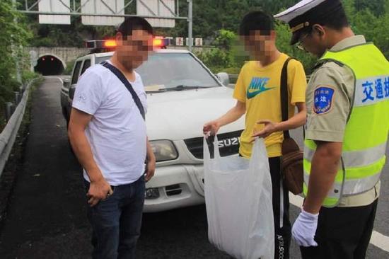 ![]() 去年在高速路停車摘李子被罰200元,今年他又來了。這次他步行進(jìn)去,還是挨了罰單——近段時間以來,巫山縣脆李成熟,高速路上不時有一些車輛停在路邊,駕駛?cè)嘶虺塑嚾伺艿焦麡湎虏烧?/p> 今天(6月26日),執(zhí)法人員在進(jìn)城方向財神梁隧道出口(奉節(jié)縣境內(nèi))的路邊發(fā)現(xiàn)兩名男子,巡邏車停下時兩人正拎著大口袋采摘路旁李子,被抓了現(xiàn)行。 ![]() 經(jīng)詢問,兩名男子是奉節(jié)人。其中一名男子說,去年這個時候他就發(fā)現(xiàn)該路段有李子,而且當(dāng)時停車摘李子時,被執(zhí)法人員逮住,罰了200元。今年又到李子成熟的季節(jié),想到將車子停在路邊目標(biāo)太大容易暴露,兩人就自作聰明地將車停在夔門收費(fèi)站,然后步行穿越邊網(wǎng)進(jìn)入高速路,殊不知天網(wǎng)恢恢,兩人再次被逮。 |