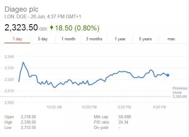 ▲帝亞吉歐股價 截至英國當(dāng)?shù)貢r間6月26日,帝亞吉歐在倫敦證券交易所收盤報于2323.5英鎊,市值584.9億英鎊,折合人民幣約5095億元,比茅臺少了一千億元左右。 根據(jù)申萬行業(yè)分類,A股有35家互聯(lián)網(wǎng)傳媒行業(yè)上市公司。截至6月26日收盤時,這35家A股互聯(lián)網(wǎng)公司合計市值為6580億元,合計2016年凈利潤為108.56億元。 反觀貴州茅臺,作為白酒行業(yè)與白馬股的代表,6月26日收盤時的市值為6088億元,2016年的凈利潤為167億元。也就是說,茅臺的市值接近35家互聯(lián)網(wǎng)公司的總和,而去年凈利潤則超過了在A股上市的整個互聯(lián)網(wǎng)行業(yè)。 貴州茅臺優(yōu)秀的業(yè)績表現(xiàn)也支撐起了茅臺股價的持續(xù)上揚。作為A股市值前十大公司中唯一一只消費類股票,貴州茅臺的股價表現(xiàn)屢屢突破券商的預(yù)期,引發(fā)券商分析師紛紛上調(diào)茅臺目標(biāo)價。 根據(jù)中國基金報報道,中金公司已將貴州茅臺目標(biāo)價上調(diào)至613元,天風(fēng)證券則上調(diào)12個月目標(biāo)價至615元。另外西南證券、中信建投等各家券商也看好茅臺未來股價走勢,給予了“買入”評級或調(diào)高了盈利預(yù)測。 (責(zé)任編輯:admin) |