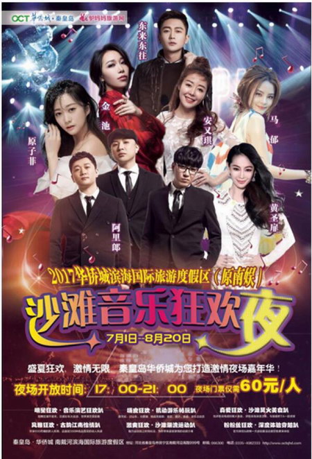 1 1 1 1 七月一日黃圣扉受邀參加秦皇島華僑城沙灘音樂節(jié),參加音樂節(jié)的還有 金池 、安又琪、阿里郎、馬郁等,作為華僑城開幕第一場(chǎng)演唱嘉賓,黃圣扉連續(xù)為音樂節(jié)的觀眾們獻(xiàn)上三首