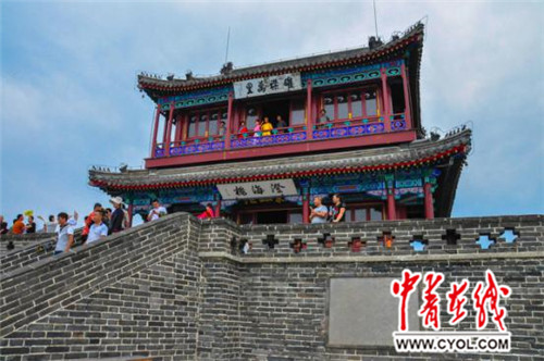 “兩京鎖鑰無雙地,萬里長城第一關(guān)。”登上具有“天下第一關(guān)”美譽的山海關(guān)城樓,既可眺望連海蒼山,又能感受古代中國的先進的軍事文化。它是明代萬里長城上迄今為止唯一保存完整的軍事城防體系,由關(guān)城、東西羅城、南北翼城及衛(wèi)城、哨城等組成。這里匯集了大江南北、關(guān)內(nèi)關(guān)外的多種風(fēng)俗和文化,為世人打造一個彰顯歷史、富有韻味和游客參與的明清文化旅游景區(qū)。采訪團的記者們被雄偉壯麗的山海關(guān)景色深深吸引,紛紛拍照留念。