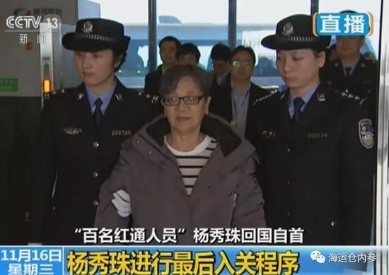 2016年11月16日,在中央反腐敗協(xié)調(diào)小組國(guó)際追逃追贓工作辦公室的統(tǒng)籌協(xié)調(diào)下,經(jīng)中央有關(guān)部門(mén)和浙江省追逃辦密切協(xié)作,潛逃海外13年的“百名紅通人員”頭號(hào)嫌犯楊秀珠回國(guó)投案自首。