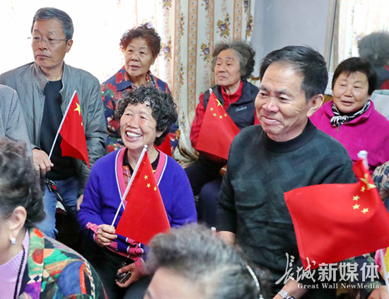 東環(huán)里社區(qū)黨委組織社區(qū)黨員群眾收看十九大開幕會直播。曹建雄 攝 群眾臉上洋溢著幸福的笑。曹建雄 攝 長城新媒體秦皇島10月20日訊(記者 張琦 通訊員 曹建雄)10月18日上午9時,中國