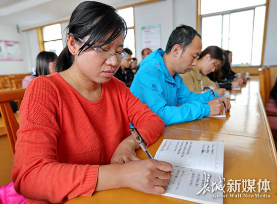 海港鎮(zhèn)黨員干部職工收看十九大開幕會時邊聽邊做筆記。曹建雄 攝
