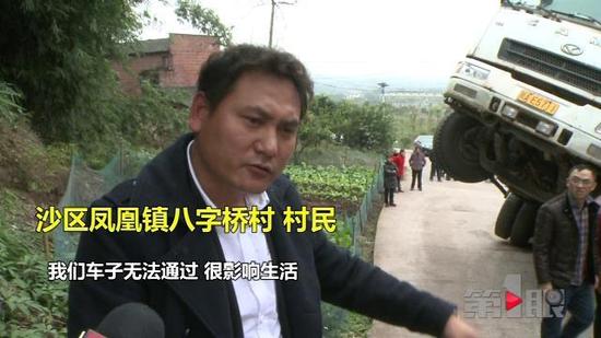沙坪壩區(qū)鳳凰鎮(zhèn)八字橋村的村民說,村里一個必經(jīng)路口,前些天來了一個大怪獸,賴在那里不走了。如今大家出個門都成了問題。 村民說的這個怪獸,就是畫面上這個大家伙。 據(jù)村民