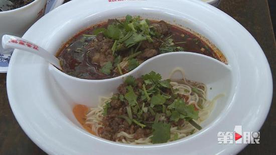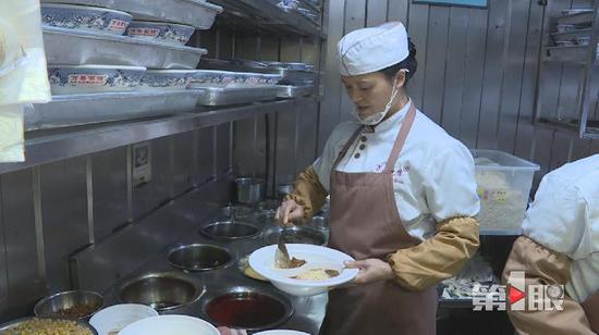 這種鴛鴦面用特制的碗裝,每種面的分量和口味都不相同,調(diào)料加多加少都很有講究,作料要打兩種味道。