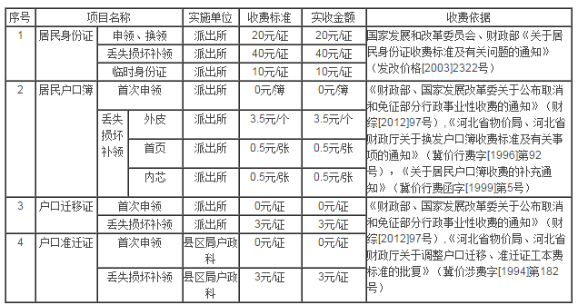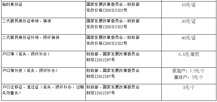 戶政業(yè)務(wù)收費(fèi)標(biāo)準(zhǔn)