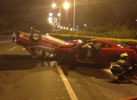 據(jù)臺灣中時電子報報道,臺灣一名邱姓大學男生16日晚間10時許駕駛從車行租來的市價1300萬元新臺幣的法拉利458豪車搭載女子,在行經臺北市府路左轉松高路時,疑因不熟超跑性能,才起步轉彎就失控從二輛正在等紅燈的客運之間撞上去,法拉利車頭幾乎全毀,兩客運車的車尾和車頭分別受損,超跑維修費用恐高達百萬新臺幣。