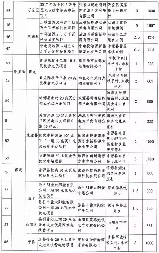 2017年集中式光伏扶貧項目表 (單位:萬千瓦) 所發(fā)電量全額收購 各級電網(wǎng)公司要本著簡化流程和提高效率的原則,加快辦理接網(wǎng)手續(xù),保證接網(wǎng)工程與項目同期投入運行,保證所發(fā)電