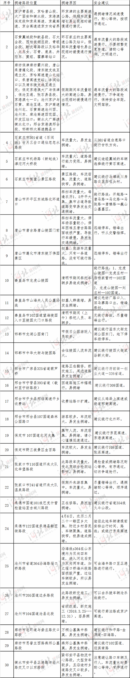 清明假期將至,河北省交管局根據(jù)近期全省道路交通安全形勢(shì)研判,匯總了清明假期期間全省30處事故多發(fā)和30處易擁堵路段,提醒廣大駕駛?cè)撕侠戆才懦鲂?,提前掌握路況,謹(jǐn)慎守法駕