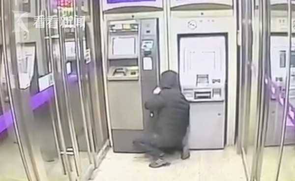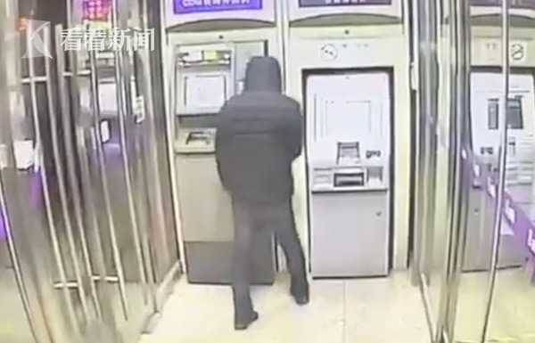 蒙面男子用鐵釬撬ATM機拿錢 觸發(fā)警報后秒慫