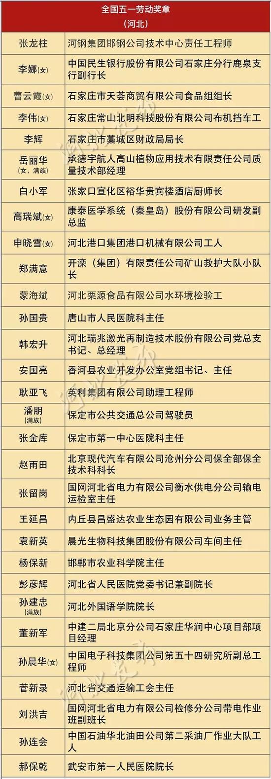 為進一步聽取群眾意見,接受社會監(jiān)督,全國總工會現(xiàn)將2018年全國五一勞動獎和全國工人先鋒號擬表彰人選(集體)予以公示。其中,河北4家單位獲得全國五一勞動獎狀、30名個人獲得