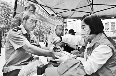 日前,志愿者醫(yī)療服務(wù)隊(duì)在廣陽區(qū)吉祥小區(qū)為居民免費(fèi)體檢。廣陽區(qū)“星期六文明行動(dòng)”志愿服務(wù)活動(dòng)常態(tài)化開展,全區(qū)各志愿服務(wù)團(tuán)隊(duì)訪千樓、進(jìn)萬家,以實(shí)際行動(dòng)為創(chuàng)建文明城市貢獻(xiàn)力量。吳 杰攝