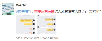 記者輾轉找到微博網(wǎng)友@Werto,并進行了電話采訪。網(wǎng)友@Werto 告訴記者,他當時以為花個3000多就可以把問題解決。但是,當他進去做手術之后,醫(yī)生把包皮那里割開一點,就發(fā)了一張照片給他看,說“尖銳濕疣嚴重需要處理”。 網(wǎng)友@Werto 回憶,“醫(yī)生當時就說,這個必須要處理,不處理的話,你還想要小孩嗎?當時我不想做了,然后那個女醫(yī)生又跟我說,你不做的話,你還想去傳染給誰?” 這名網(wǎng)友說,他把自己在南寧遠東醫(yī)院做手術的經(jīng)歷發(fā)到微博上后,不少有相同經(jīng)歷的網(wǎng)友,都紛紛私信留言給他。