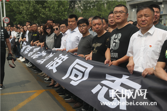 秦皇島市社會(huì)各界群眾自發(fā)為沈汝波送行。祖迪攝 親人送別悲落日,全城含淚送好人。6月3日,好人沈汝波遺體告別儀式在秦皇島市殯儀館舉行,秦皇島全市各界自發(fā)前來給沈汝波送行。 1978年,18歲的沈汝波參軍入伍,立下了“一生要做10萬件好事”的誓言。近40年來,他堅(jiān)持每天為群眾做好事,他是大家眼中的“老黨”“波叔”“沈大哥”,他用11萬余件好事踐行著當(dāng)時(shí)的誓言,傳遞著溫暖社會(huì)的正能量,把用來計(jì)數(shù)的“正”字寫滿港城。