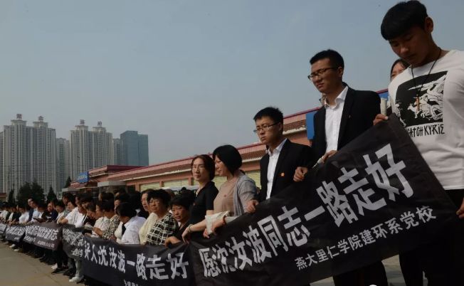 巍峨燕山青松肅立, 浩瀚渤海深流咽聲。 昨日港城人民淚別沈汝波。 ![]() 優(yōu)秀共產(chǎn)黨員、中國(guó)好人、河北省道德模范、燕趙楷模沈汝波因患食道癌醫(yī)治無效,于6月1日凌晨1時(shí)15分不幸逝世,享年58歲。 6月3日上午,沈汝波同志遺體告別儀式在市殯儀館告別大廳舉行。孟祥偉、張瑞書、田金昌、劉辰彥、郝占敏、薛永純、閆五一、劉文萍、劉新宏、李國(guó)勇、陳玉國(guó)、馮國(guó)林、王景田、廉茹艷、高恩澤等市領(lǐng)導(dǎo),市縣(區(qū))有關(guān)單位負(fù)責(zé)同志以及各界代表400多人參加沈汝波告別儀式,全市近萬(wàn)名群眾用沿途送別等方式,向沈汝波表達(dá)哀思和懷念。 ![]() 上午8時(shí)整 遺體告別儀式正式開始 告別大廳凝重而莊嚴(yán)。大廳正中央,沈汝波同志的遺體身著他喜愛的綠軍裝,覆蓋著中國(guó)共產(chǎn)黨黨旗,靜臥在潔白的菊花叢中,寧?kù)o安詳。中共秦皇島市委、秦皇島市人大常委會(huì)、秦皇島市人民政府、政協(xié)秦皇島市委員會(huì)、秦皇島軍分區(qū),市直相關(guān)部門、各縣區(qū)和社會(huì)各界敬獻(xiàn)的花圈一字排開,擺放在告別大廳的周圍。 ![]() 遵從沈汝波生前遺愿,他去世后一切從簡(jiǎn),不搭靈棚,不大張旗鼓搞儀式,告別儀式莊重簡(jiǎn)潔。人們眼含熱淚肅立默哀、三鞠躬,依次排成長(zhǎng)隊(duì)走上前,再看老沈一眼。 ![]() ![]() 輕輕獻(xiàn)上一朵菊花, 再鞠上一躬。 隊(duì)伍是那樣長(zhǎng), 就像人們的不舍,綿綿不盡。 ![]() ![]() ![]() ![]() 隊(duì)伍里,55歲的姜志鳳走得踉蹌,她5點(diǎn)出門,倒了兩趟公交車趕到了告別廳,終于又見到了老沈。“跟他一起當(dāng)志愿者還沒當(dāng)夠呢。”姜志鳳哭著說,她家住北戴河新區(qū),去年她加入了黨義志愿者服務(wù)隊(duì)在北戴河區(qū)的分隊(duì)。 海港區(qū)先茂里社區(qū)居民朱國(guó)順向沈汝波遺體凝視了許久,他是老沈當(dāng)初在小區(qū)里建起巡邏隊(duì)的隊(duì)員,也是第一個(gè)接過他的志愿者團(tuán)隊(duì)袖標(biāo)的老鄰居,“老伙計(jì)都來送你了,當(dāng)初你帶著我們是做好事的小游擊隊(duì),現(xiàn)在你看看,已經(jīng)成大部隊(duì)了!” 馬志英特意準(zhǔn)備了一大束菊花,他和同事王燕梅一大早就來到了告別廳。“我沒見過沈汝波,但他的事都聽說過,他是個(gè)有信仰的人,也是個(gè)實(shí)干的人,我倆在單位聽說他去世了,特別難過,就約好來送送,他身上讓我們學(xué)習(xí)的東西太多了。”馬志英說。 ![]() 告別儀式結(jié)束后, 人們還久久不愿散去。 黨義服務(wù)隊(duì)的志愿者王曉靜, 一直在安慰著送行的人群。 她說: “除了自發(fā)來的人,黨義服務(wù)隊(duì)總隊(duì)和各個(gè)分隊(duì)都到齊了,有最初附近的先茂里小學(xué)、先茂里幼兒園的志愿隊(duì),也有后來成立起來的燕山大學(xué)、第四醫(yī)院等遍及各行各業(yè)、各個(gè)年齡層的隊(duì)伍,陽(yáng)光義工、藍(lán)天救援隊(duì)、愛心車隊(duì)這些協(xié)作愛心組織也都來送他了。沈叔心愿是志愿者隊(duì)伍能擴(kuò)大,能年輕化,今天的成績(jī),他一定是欣慰的。” ![]() ![]() ![]() “沈老一路走好!” 靈柩車啟動(dòng), 殯儀館廣場(chǎng)上送行的隊(duì)伍 已排到了大門外, 喊著沈汝波的名字, 人們用軍禮送別老兵。 ![]() ![]() 上午10時(shí) 載著沈汝波靈柩的車隊(duì)經(jīng)過海港區(qū)秦皇東大街與文化路交叉口,由300多名學(xué)生、志愿者、街居干部、熱心市民自發(fā)組成的送行隊(duì)伍早已等候在路邊,人們拉著黑底白字的緬懷挽聯(lián)條幅,默默地為沈汝波送行。 ![]() 得知車隊(duì)從這里經(jīng)過,東環(huán)路街道辦事處72歲的老黨員荊國(guó)舫提前1個(gè)多小時(shí)就趕了過來。作為海港區(qū)“草根宣講團(tuán)”團(tuán)長(zhǎng),他和沈汝波經(jīng)常在區(qū)里的活動(dòng)現(xiàn)場(chǎng)和開會(huì)時(shí)碰到,兩人有過幾次接觸,他還曾請(qǐng)沈汝波給他們社區(qū)作過報(bào)告。“他真是一個(gè)高尚偉大的人。”荊國(guó)舫回憶,兩人最后一次見面是去年區(qū)里的一個(gè)會(huì)上,“他特別瘦,人也很憔悴??蛇€是那么熱心,聽說我腰腿不好,還給我做了按摩。”荊國(guó)舫眼圈紅了。 東北大學(xué)秦皇島分校青年志愿者協(xié)會(huì)主席李瑞鑫和十多名老師同學(xué)站在送行隊(duì)伍的最前面,他們手中拉著“沉痛悼念沈汝波同志,好人精神永存”的挽聯(lián)條幅是前一天特意定制的。“雖然和沈汝波沒見過面,但我們都知道他的事跡,一個(gè)老兵要做10萬(wàn)件好事的故事。”李瑞鑫說,學(xué)校經(jīng)常開展學(xué)習(xí)沈汝波的志愿者活動(dòng),大家對(duì)沈汝波特別敬重和敬佩,他一直都是同學(xué)們學(xué)習(xí)的榜樣。我們來送送他,更要繼續(xù)學(xué)習(xí)傳承沈汝波精神,盡力去幫助更多需要幫助的人。 ![]() 秦皇島市第一中學(xué)的20多名教師也自發(fā)趕過來為沈汝波送行。“沈汝波2014年曾來我們學(xué)校給學(xué)生作過一次報(bào)告。”雖然已過去近4年,工會(huì)主席喬鳳玲仍記得沈汝波作報(bào)告時(shí)的樣子,“他講得特別好,語(yǔ)言樸實(shí)感人。”喬鳳玲說,全校師生都為他鼓掌,心情特別振奮,場(chǎng)景歷歷在目,就如同發(fā)生在昨天。“他人走了,精神