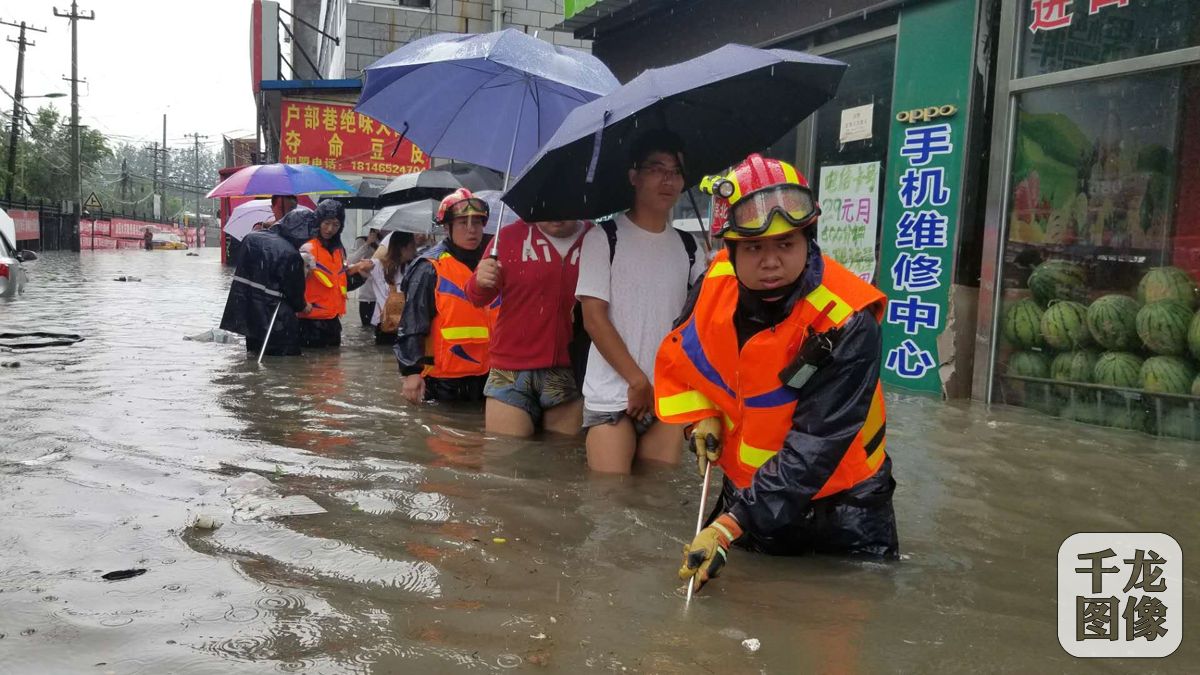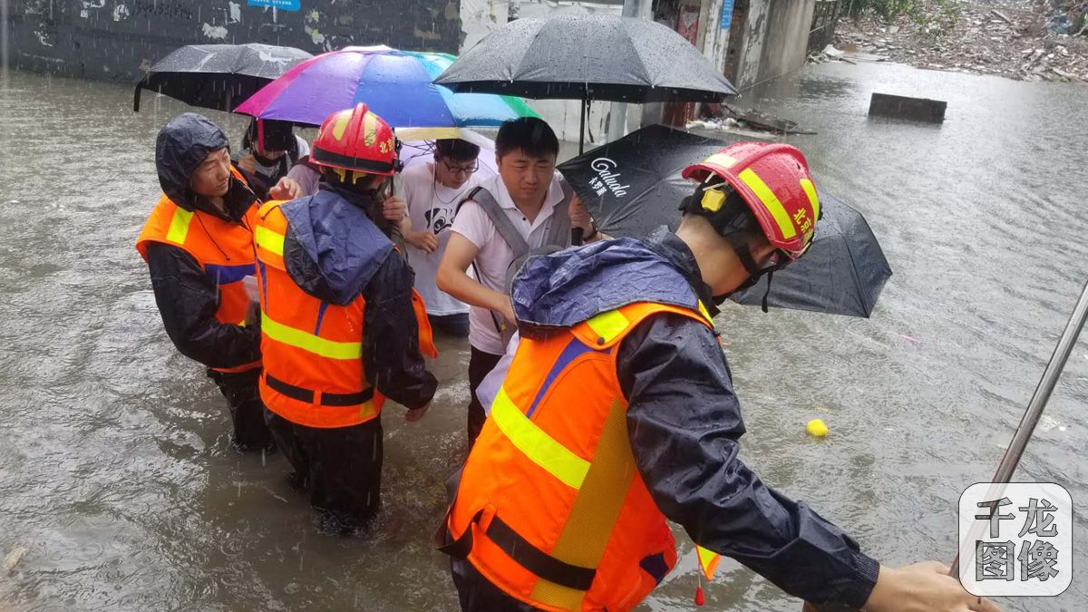 7月16日,北京昌平消防支隊(duì)回龍觀中隊(duì)救出13名被雨后積水圍困的群眾。
