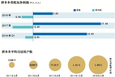 拼多多創(chuàng)始人、董事長兼CEO黃崢。圖/視覺中國 7月17日,拼多多向美國證券交易委員會(SEC)更新了招股書。拼多多計劃發(fā)行8560萬股美國存托股票(ADS,下同),承銷商的超額配售比例為1284萬股,發(fā)行價為每股16-19美元。以此計算,拼多多擬融資額度在15.75億美元至18.70億美元之間。新京報記者從多個信源了解到,拼多多將于7月26日在納斯達(dá)克掛牌交易。 從成立到IPO,拼多多用了不到3年。就在市場驚呼拼多多火箭般成長的同時,疑惑與爭議也隨之而來:不到3年如何獲得近3億活躍用戶?它的商業(yè)模式是什么?不缺錢的拼多多為什么還要上市? 上市前夜,拼多多迎來一場商家“圍城”風(fēng)波。有商家認(rèn)為拼多多“涉嫌放縱山寨產(chǎn)品、格式合同有悖公平原則”;還有的商家抱怨拼多多“懲罰”太重,平臺規(guī)則嚴(yán)苛。對此,拼多多方面以公司處于緘默期為由,并未置評。 “火箭”成長,拼多多成電商老三 17日,美國IPO研究公司IPOBoutique網(wǎng)站的信息顯示,拼多多將于7月26日在納斯達(dá)克掛牌。新京報記者從多個獨立信源處了解到,拼多多將于美東時間7月26日早9:30(北京時間當(dāng)天21:30)掛牌交易。拼多多方面以處于緘默期為由,對此不予置評。 創(chuàng)始人黃崢口中“3歲”的拼多多成立于2015年,定位是一家主打拼團(tuán)的社交電商。2016年9月黃崢將拼多多與其創(chuàng)辦的另一家平臺拼好貨合并,組建為目前的拼多多。 這家通過微信發(fā)起砍價或拼團(tuán)購物信息而被多數(shù)用戶熟知的公司,創(chuàng)立之后成長極其迅速。 招股書顯示,截至2017年12月31日拼多多的年活躍用戶為2.45億,而截至2018年3月31日的年活躍用戶達(dá)到2.95億,這意味著單季用戶增長5000萬。2018年6月的采訪中,董事長兼CEO黃崢稱,拼多多的月活躍用戶量近3億,月活躍商戶達(dá)到100萬。按照這一數(shù)字來看,拼多多已超過唯品會,成為僅次于淘寶和京東的第三大電商平臺。 拼多多的快速成長還體現(xiàn)在營收上。2016年平臺營收為5.05億元(人民幣,下同),到了2017年收入已經(jīng)達(dá)到17.44億元,增長2倍有余;2018年僅第一季度營收就達(dá)到了13.85億元,同比增長37倍。 拼多多交易規(guī)模的增速同樣驚人。招股書顯示,2017年和2018年一季度,拼多多的總訂單量分別為43億單和17億單,2017年的GMV為1412億元。此前拼多多一高管在公開場合稱,2018年初的公司日訂單量已經(jīng)超過京東。 交易體量驚人,但拼多多還沒有實現(xiàn)盈利。招股書顯示,2016年、2017年和2018年Q1分別虧損2.92億元、5.25億元和2.01億元。 用戶的快速增長不可避免地導(dǎo)致了拼多多用戶與巨頭的重疊。數(shù)據(jù)顯示,卸載淘寶的用戶有50.3%流向拼多多,卸載拼多多的用戶有78.3%流向淘寶,兩個平臺中部分人群出現(xiàn)高度重合性。 “對阿里來說,拼多多侵占了原本屬于淘寶的大量低端消費市場。對京東來說,拼多多競爭的是騰訊的資源支持。”獨立IT分析師唐欣稱,拼多多的出現(xiàn)打破了看似鐵板一塊的電商市場,平臺也獲得了可觀的流量。 曾因“誘導(dǎo)分享”鏈接被微信封殺 “拼多多流量大得有點嚇人,經(jīng)常達(dá)到我們這邊快遞每天發(fā)貨的上限。”可心柔紙巾電商負(fù)責(zé)人吳立營告訴新京報記者。 “少品類、高單量”的爆款策略是拼多多的核心商業(yè)模式,聯(lián)合創(chuàng)始人達(dá)達(dá)在一次媒體溝通會上這樣描述拼多多的商業(yè)邏輯,將大量產(chǎn)能投入到2至3款產(chǎn)品上,更少的生產(chǎn)線和更大的生產(chǎn)規(guī)模能大大降低制造成本。 像這樣的爆款產(chǎn)品,拼多多商家往往只賺取極低的利潤。吳立營以在拼多多上銷量為116萬件的爆款紙巾為例,向記者介紹了成本結(jié)構(gòu),按28包規(guī)格來算,平均每件售價29.9元,其中,生產(chǎn)成本為25.5元,快遞物流費3.5元,凈利潤僅為0.9元。 “那些被傳統(tǒng)電商所淘汰的低毛利商品,在這里幾乎是如魚得水,”唐欣稱,傳統(tǒng)電商平臺隨著商品品類的擴張,出現(xiàn)了流量擁擠的問題,而基于社交推薦的拼多多幾乎所有的商品曝光都發(fā)生在社交平臺上。依靠微信的社交關(guān)系引流,是拼多多成功的核心因素,但也是其命門所在。 拼多多的成長不靠大規(guī)模燒錢,而是一種結(jié)合了社交屬性的另類增長,“這種模式對傳統(tǒng)的燒錢式增長帶來了巨大的威脅。”唐欣表示。 “騰訊對其涉嫌誘導(dǎo)分享的拼團(tuán)模式的寬容與否,是拼多多的風(fēng)險之一,”有業(yè)內(nèi)人士稱,拼多多與京東雖然都是騰訊尋求流量變現(xiàn)和抗衡阿里的重要武器,但當(dāng)拼團(tuán)模式對用戶體驗產(chǎn)生影響時,騰訊將面臨抉擇。 3月9日晚,微博用戶“甜螺小菇?jīng)?rdquo;錄制視頻顯示,當(dāng)晚9點58分,拼多多微信服務(wù)號多個菜單點擊后出現(xiàn)“已停止訪問該網(wǎng)頁”,原因是“網(wǎng)頁包含誘導(dǎo)分享行為內(nèi)容,被多人投訴”。約一個半小時后,拼多多微信服務(wù)號恢復(fù)正常。當(dāng)晚,新京報記者第一時間聯(lián)系拼多多,對方工作人員稱拼多多微信服務(wù)號一切正常。一名接近拼多多的知情人士稱,“這對拼多多來說是小事,2017年拼多多被微信封殺過1000多次。” 新京報記者在微信對外部鏈接內(nèi)容的規(guī)則中看到,“拼團(tuán)”被定義為誘導(dǎo)