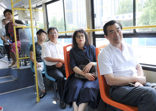 黃正明與保定市總工會、保定市公交總公司、河北大學(xué)附屬醫(yī)院、河北慢病防治工作站的相關(guān)人員共同乘坐公交,聆聽了公交車廂內(nèi)播放的“關(guān)愛頸椎健康 不做手機低頭族”公益健康語音提示。