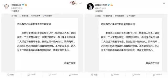 后是楊紫&秦俊杰:分手是兩個(gè)人的決定,無關(guān)他人。