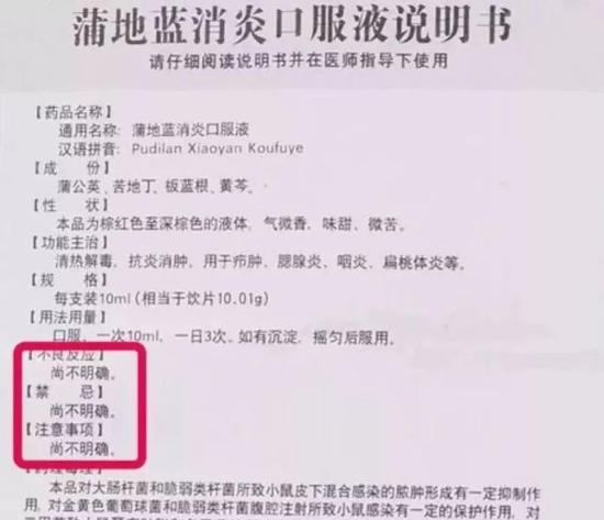 因?yàn)槊孕胖谐伤?ldquo;副作用小”,加上“口口相傳”,很多人并不會(huì)真正仔細(xì)的去看藥品說(shuō)明書(shū),就把蒲地藍(lán)當(dāng)成心目中的神藥。