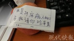 爸爸住院 9歲男孩寫下暖心紙條請醫(yī)生吃蘋果 日期:2017-09-06 10:26:18 點擊:193 好評:0